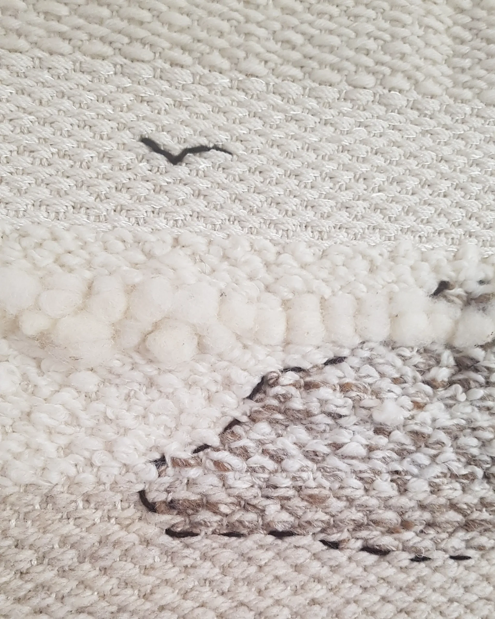 Cette œuvre textile est une célébration de la nature, tissée et brodée entièrement à la main sur un métier traditionnel.